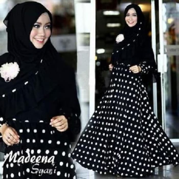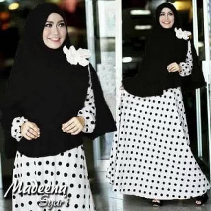 Jual Baju Muslim Madeena Sari Hitam Putih Polkadot Big Shopee Indonesia